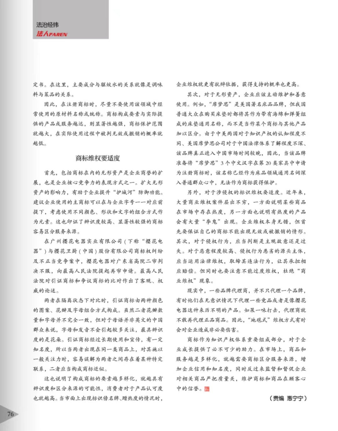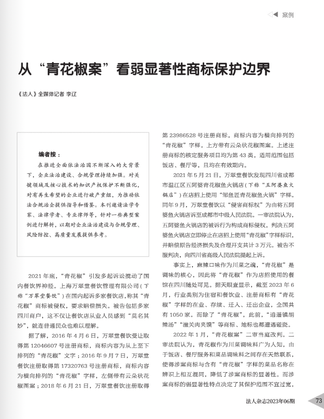 芜湖辉知简讯 | 辉知队黄俊益律师应“法治日报”旗下杂志邀请,就“青花椒”案发表专家点评